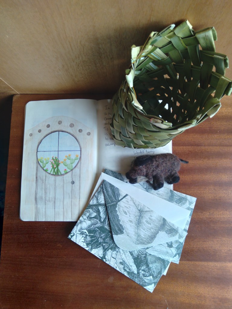 I also had the chance to spend some cozy times in my little house there. I built a fire in the woodstove in the evenings, read, wrote letters, wove kete (or baskets), drew, felted, and even did a mini ballet class on my own. The structure is partly made up of a storage container, which works well as the bedroom space. There is another portion added on that holds a simple kitchen, table, chairs, storage area, and hammock. It was very comfortable.